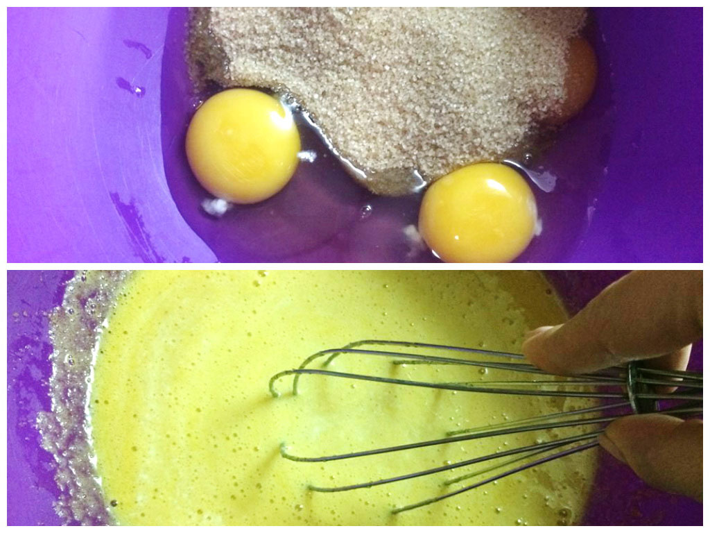 Ouăle le batem ușor cu zahărul.