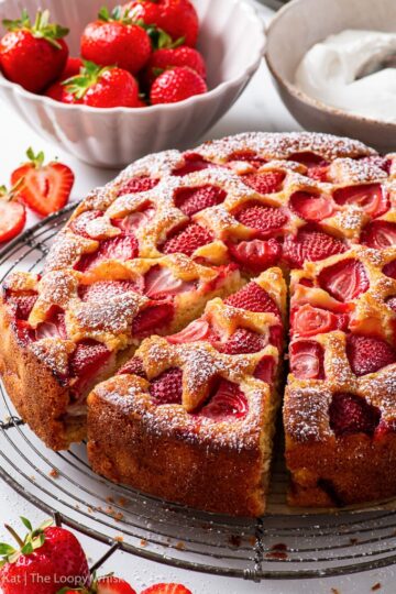 Ingrediente: 500 g căpșuni proaspete200 g zahărCoaja rasă de la 2 lămâi115 g unt, topit și răcit40 g ulei de floarea-soarelui175 g lapte, la temperatura camerei3 ouă mari, la temperatura camerei1 linguriță extract de vanilie210 g făină albă75 g făină de migdale1½ linguriță praf de copt½ linguriță bicarbonat de sodiu½ linguriță sareZahăr pudră, pentru decor […]
